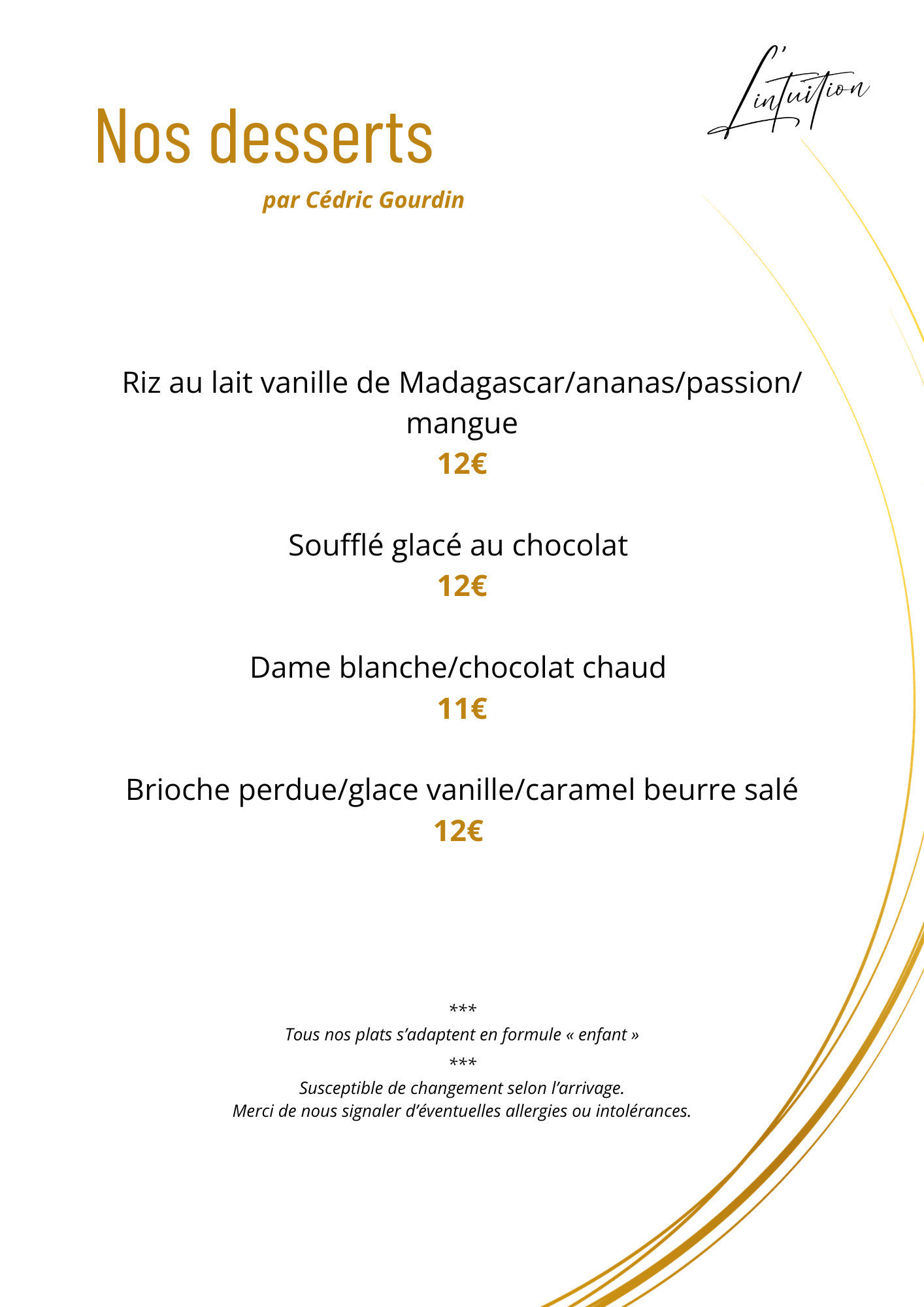 La nouvelle carte vous sera servie dès ce vendredi 13 mars 2026 :