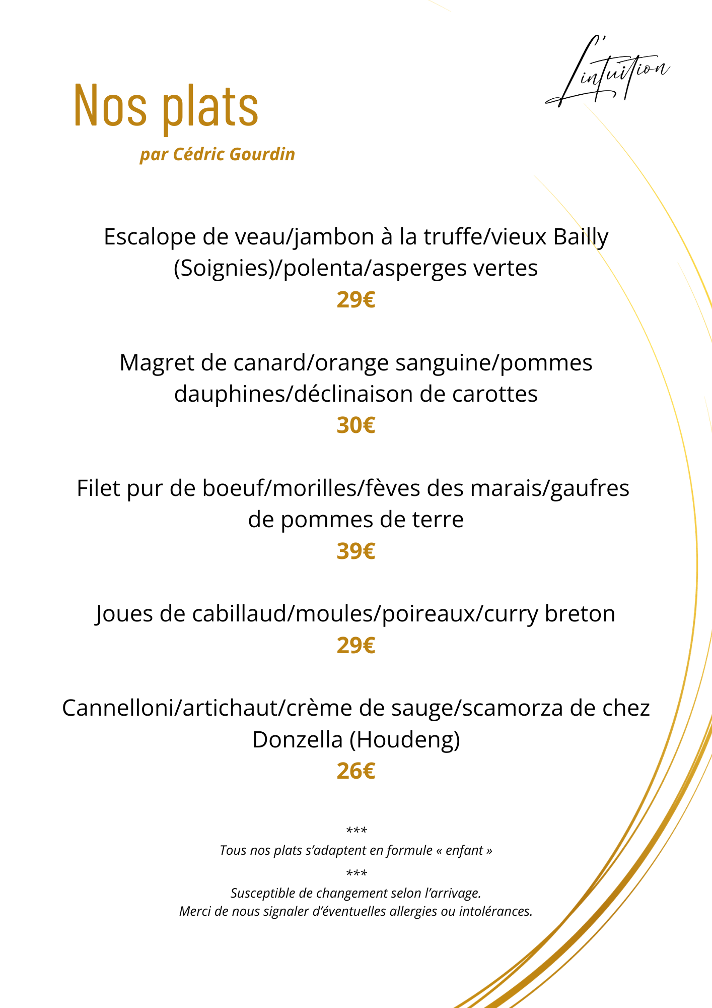 La nouvelle carte du Chef Cédric Gourdin :
